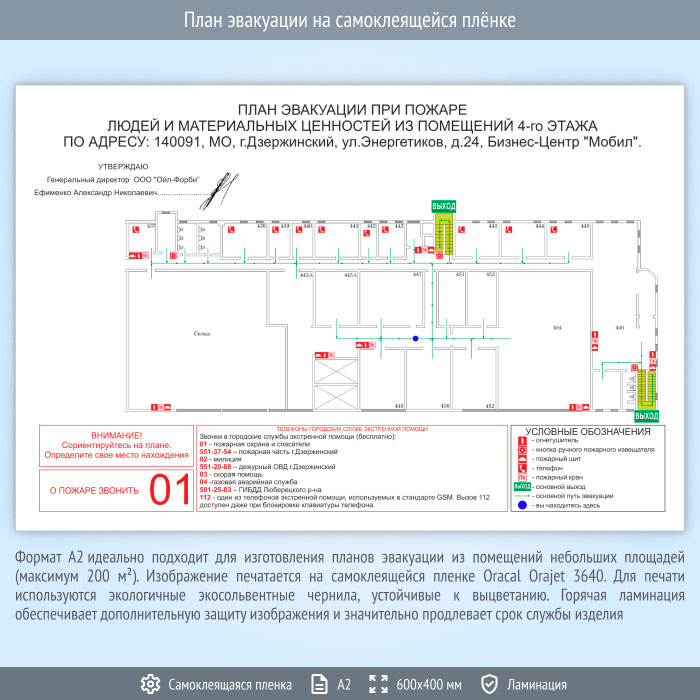 План эвакуации на самоклеящейся плёнке (А2 формат) в Твери купить