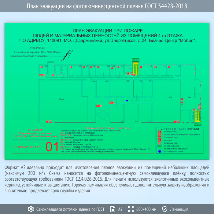 План эвакуации на фотолюминесцентной плёнке ГОСТ 34428-2018 (А2 формат) в Твери купить