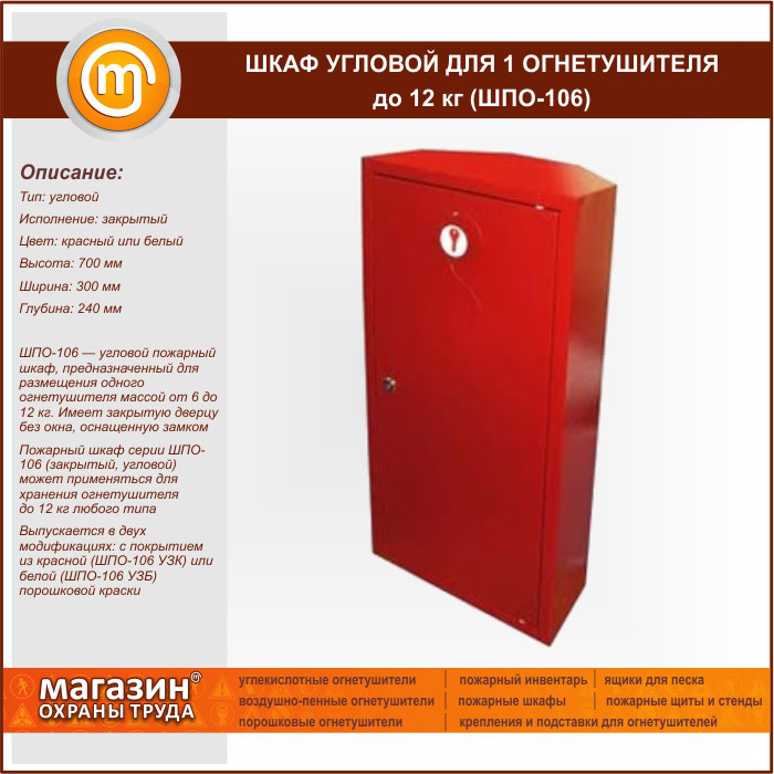 Шкаф пожарный ШПО-106 угловой для 1 огнетушителя до 12 кг в Твери купить