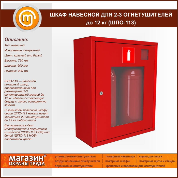 Шкаф пожарный ШПО-113 навесной для 2-3 огнетушителей до 12 кг в Твери купить