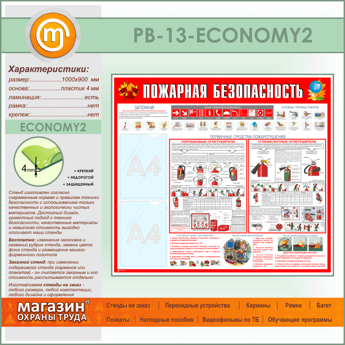 Стенд «Пожарная безопасность» с 2 карманами (PB-13-ECONOMY2) в Твери купить