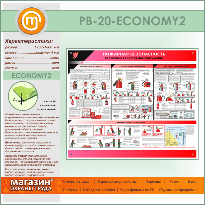 Стенд «Пожарная безопасность. Первичные средства пожаротушения» (PB-20-ECONOMY2) в Твери купить