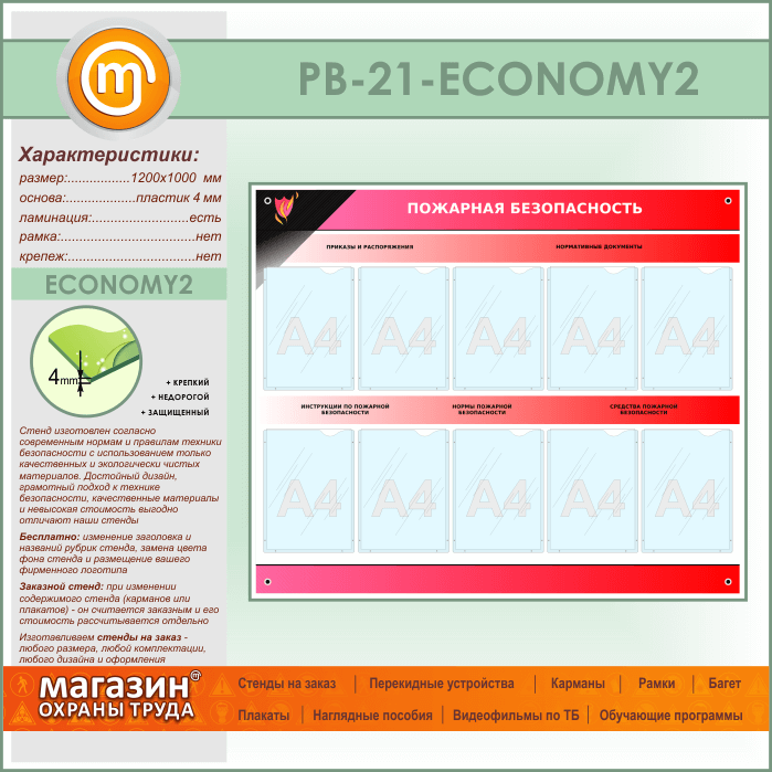 Стенд «Пожарная безопасность» с 10 карманами (PB-21-ECONOMY2) в Твери купить