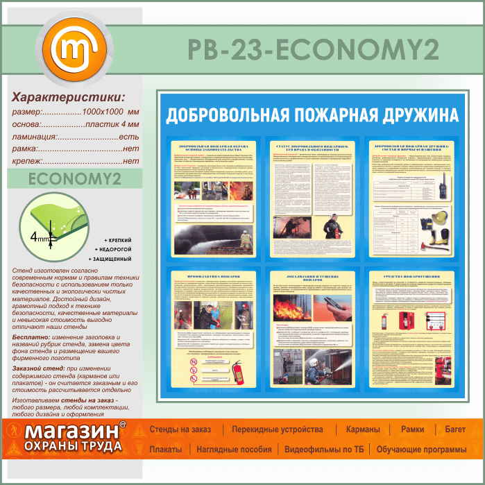 Стенд «Добровольная пожарная дружина» (PB-23-ECONOMY2) в Твери купить