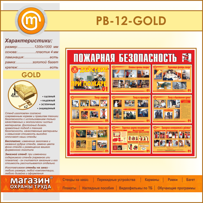 Стенд «Пожарная безопасность. Действия при пожаре» (PB-12-GOLD) в Твери купить
