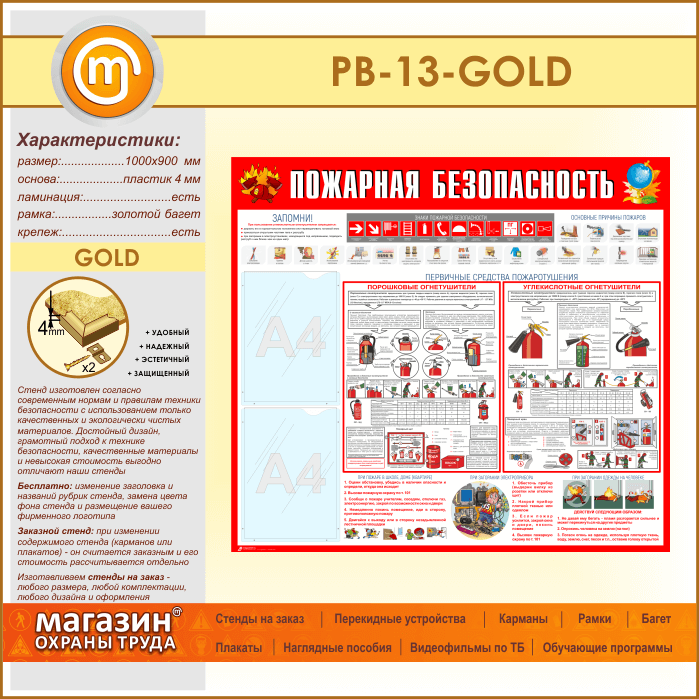 Стенд «Пожарная безопасность» с 2 карманами (PB-13-GOLD) в Твери купить