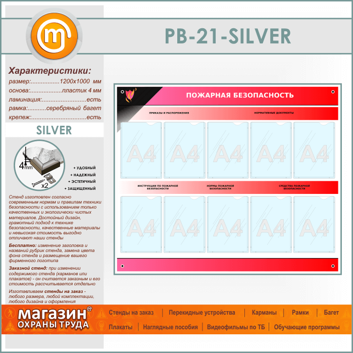 Стенд «Пожарная безопасность» с 10 карманами (PB-21-SILVER) в Твери купить