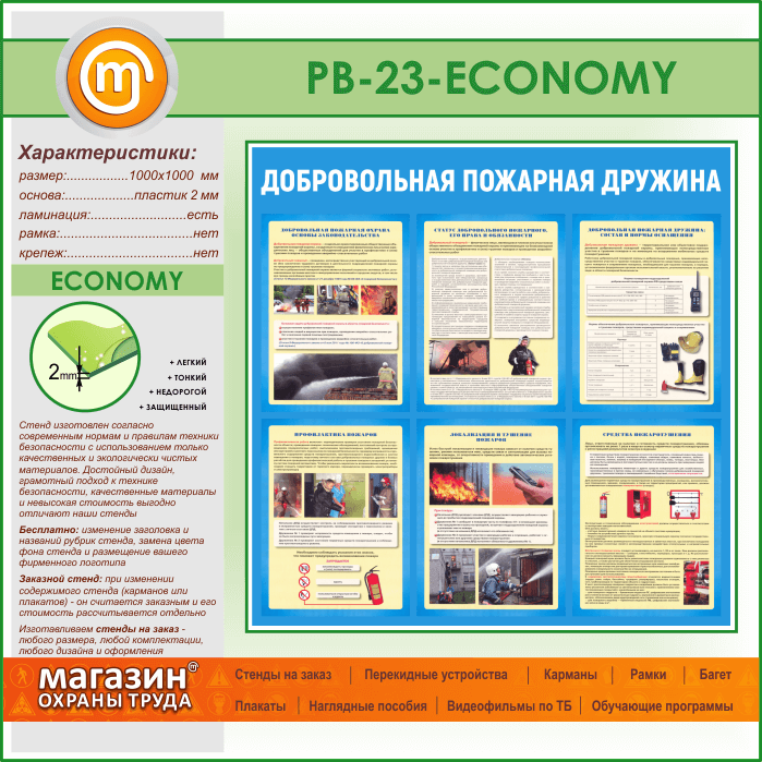 Стенд «Добровольная пожарная дружина» (PB-23-ECONOMY) в Твери купить