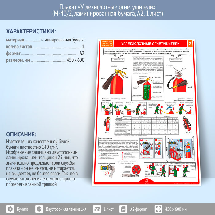 Плакат «Углекислотные огнетушители» (М-40/2, ламинированная бумага, А2, 1 лист) в Твери купить