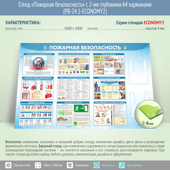 Стенд «Пожарная безопасность» с 2-мя глубокими А4 карманами (PB-24.1-ECONOMY2) в Твери купить