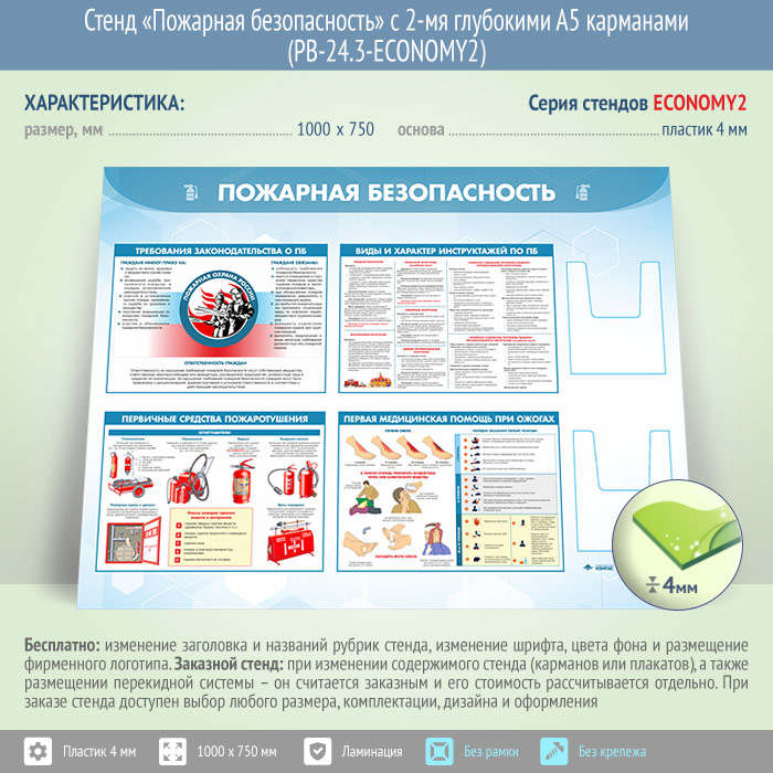 Стенд «Пожарная безопасность» с 2-мя глубокими А5 карманами (PB-24.3-ECONOMY2) в Твери купить