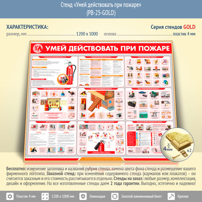 Стенд «Умей действовать при пожаре» (PB-25-GOLD) в Твери купить