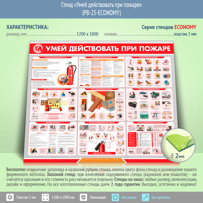 Стенд «Умей действовать при пожаре» (PB-25-ECONOMY) в Твери купить