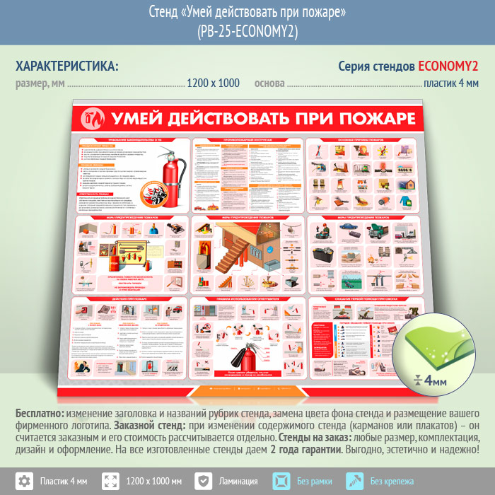 Стенд «Умей действовать при пожаре» (PB-25-ECONOMY2) в Твери купить