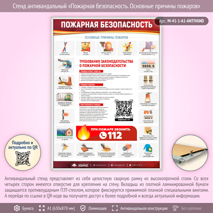 Стенд антивандальный «Пожарная безопасность. Основные причины пожаров» (M-41-1-А1-ANTIVAND) в Твери купить