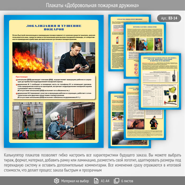 Плакаты «Добровольная пожарная дружина» (ВЗ-14, 6 листов) в Твери купить