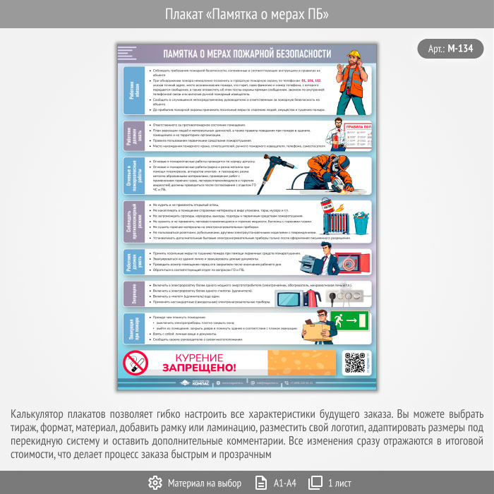 Плакат «Памятка о мерах ПБ» с QR (М-134, 1 лист) в Твери купить