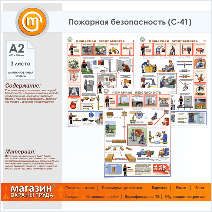 Плакаты «Пожарная безопасность» (С-41, ламинированная бумага, А2, 3 листа) в Твери купить