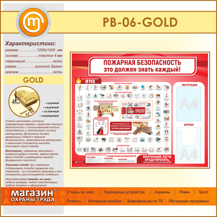 Стенд «Пожарная безопасность. Это должен знать каждый» с плоским и объемным карманами (PB-06-GOLD) в Твери купить