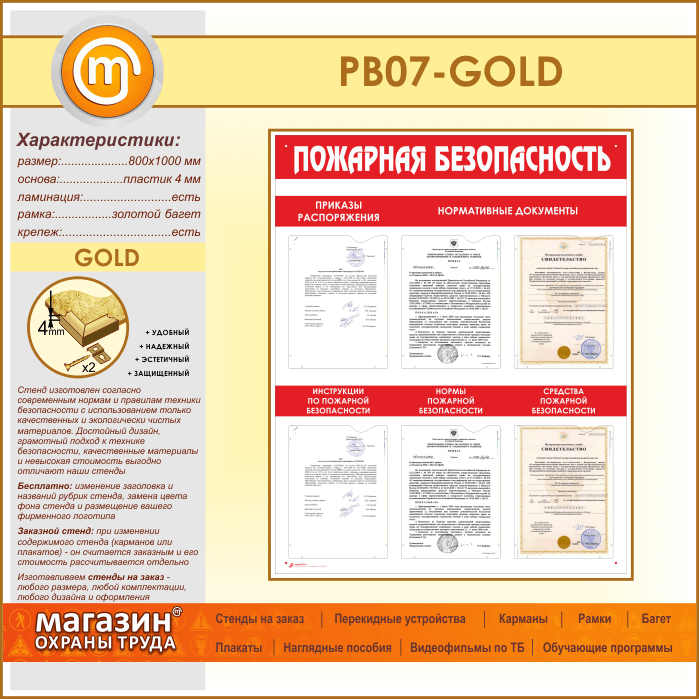 Стенд «Пожарная безопасность» с 6 карманами (PB-07-GOLD) в Твери купить