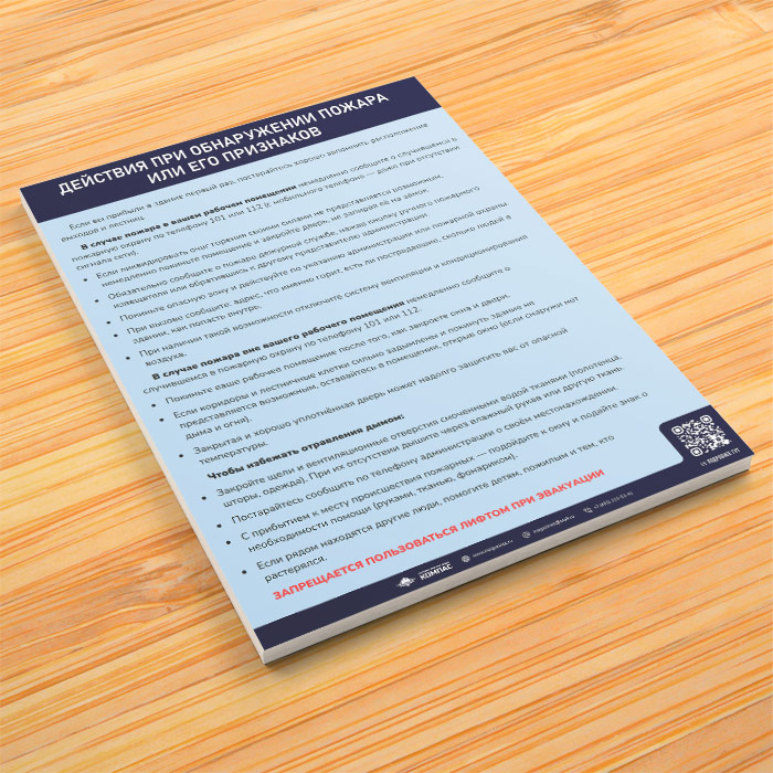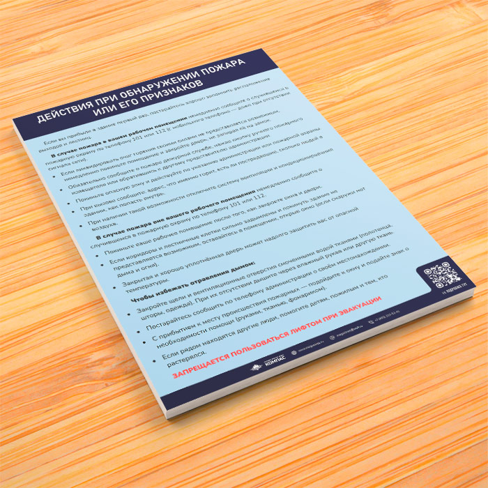 Плакат «Инструкция при обнаружении пожара или его признаков» (М-11, ламинированная бумага, А4, 1 лист) в Твери купить
