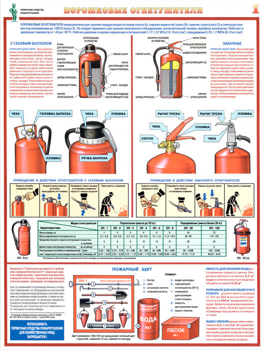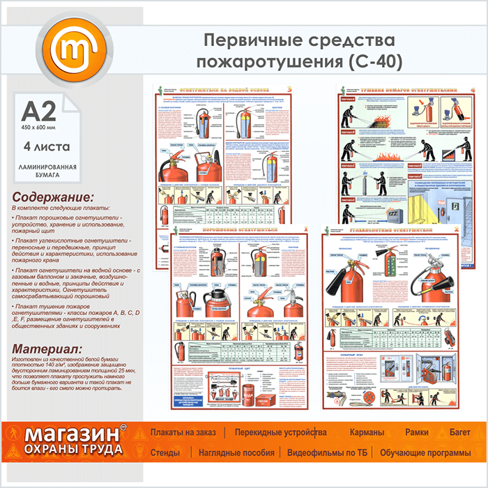 Плакаты «Первичные средства пожаротушения» (С-40, ламинированная бумага, А2, 4 листа) в Твери купить