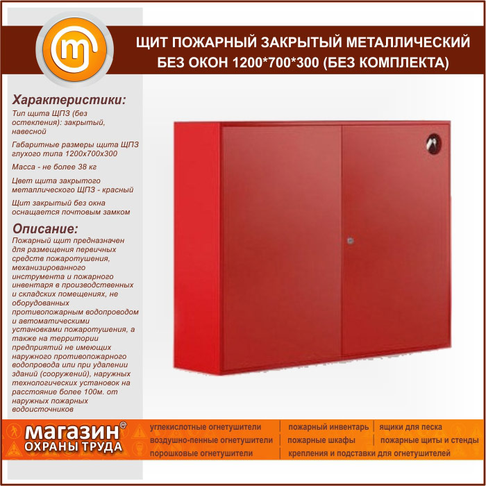 Щит пожарный закрытый металлический без окон 1200*700*300 (без комплекта) в Твери купить