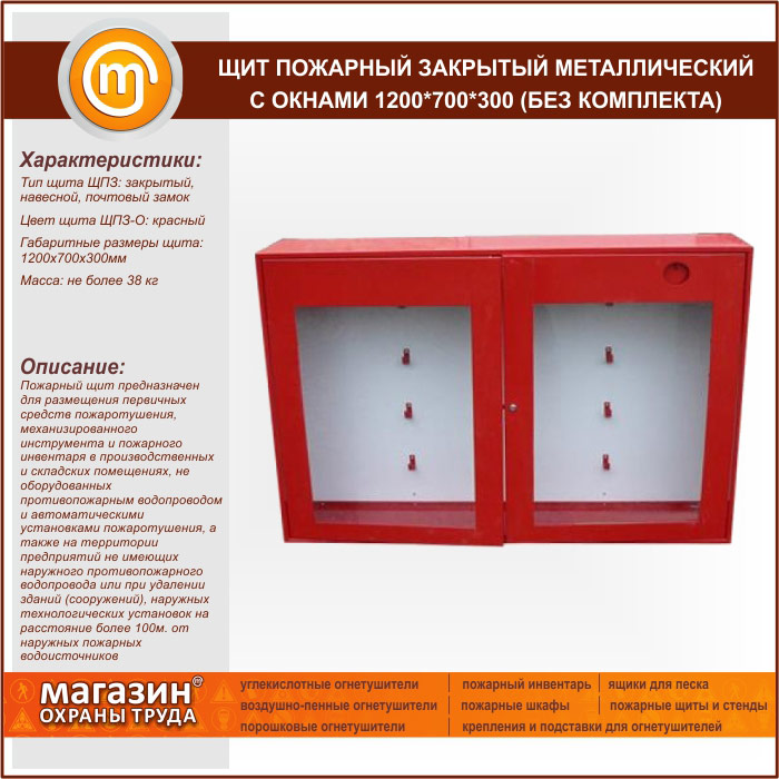 Щит пожарный закрытый металлический с окнами 1200*700*300 (без комплекта) в Твери купить