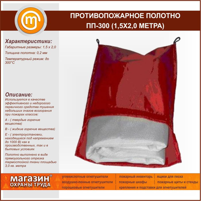 Противопожарное полотно ПП-300 (1, 5х2, 0 метра) в Твери купить