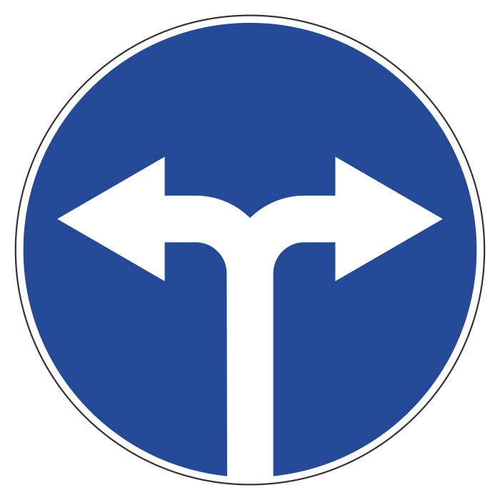 Дорожный знак 4.1.6 «Движение направо или налево» (металл 0,8 мм, I типоразмер: диаметр 600 мм, С/О пленка: тип А коммерческая) в Твери купить