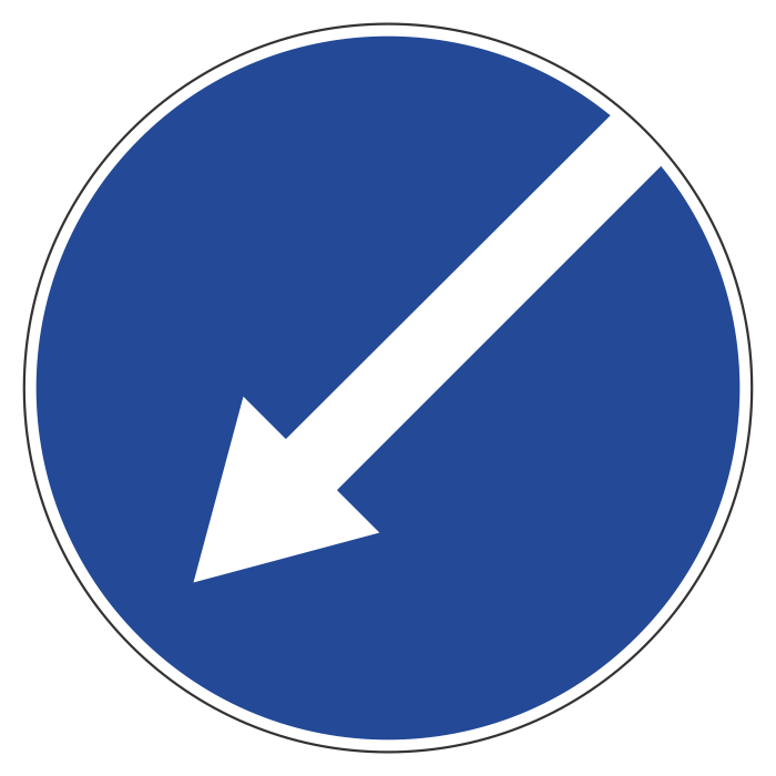 Дорожный знак 4.2.2 «Объезд препятствия слева» (металл 0,8 мм, I типоразмер: диаметр 600 мм, С/О пленка: тип А инженерная) в Твери купить
