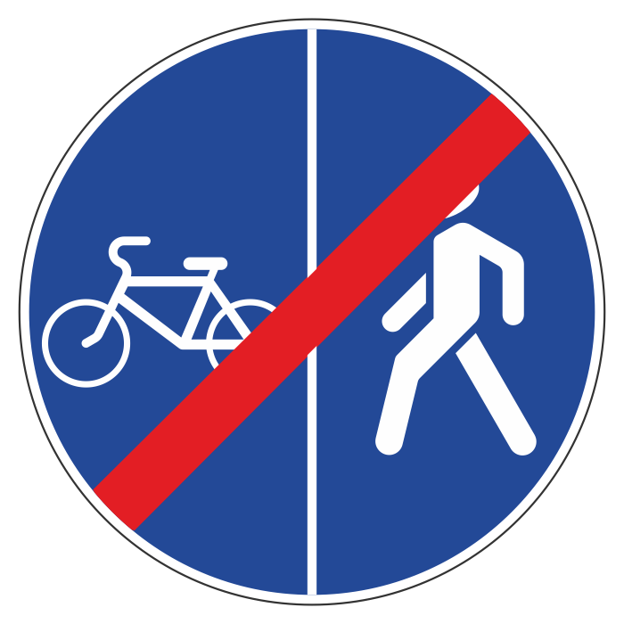 Дорожный знак 4.5.6 «Конец пешеходной и велосипедной дорожки с разделением движения» (металл 0,8 мм, II типоразмер: диаметр 700 мм, С/О пленка: тип В алмазная) в Твери купить