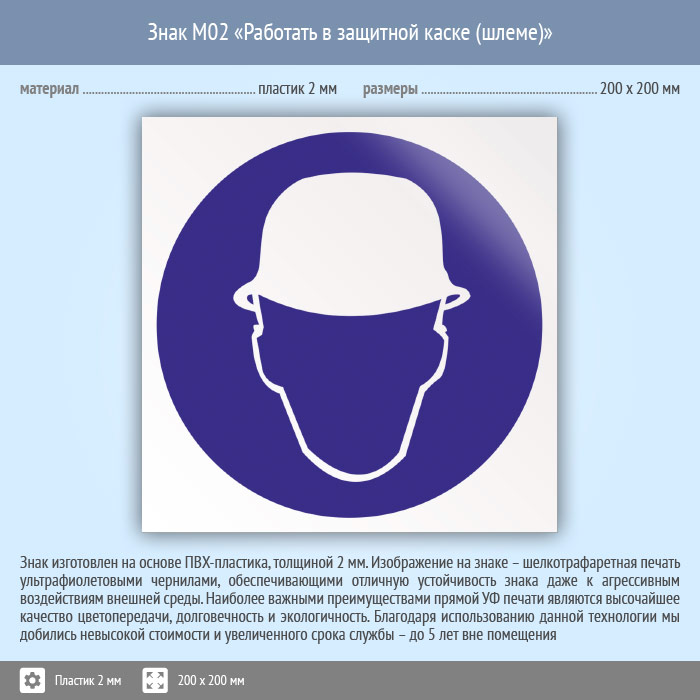 Знак M02 «Работать в защитной каске (шлеме)» (пластик, 200х200 мм) в Твери купить