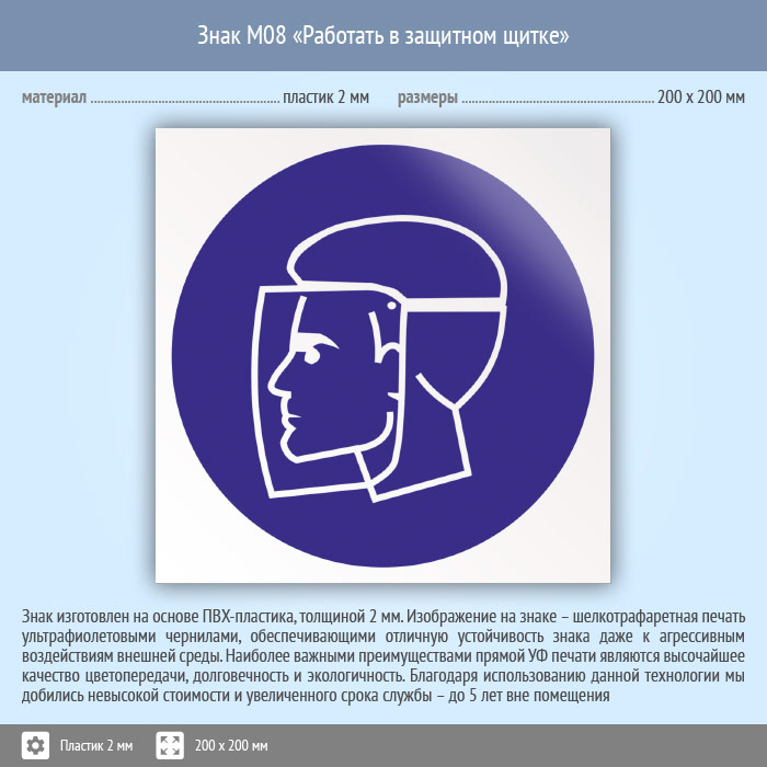 Знак M08 «Работать в защитном щитке» (пластик, 200х200 мм) в Твери купить
