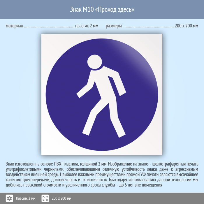 Знак M10 «Проход здесь» (пластик, 200х200 мм) в Твери купить