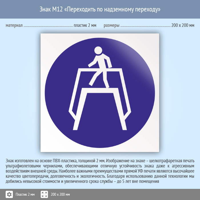 Знак M12 «Переходить по надземному переходу» (пластик, 200х200 мм) в Твери купить
