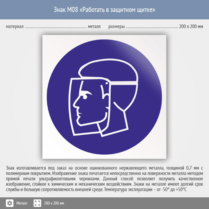 Знак M08 «Работать в защитном щитке» (металл, 200х200 мм) в Твери купить
