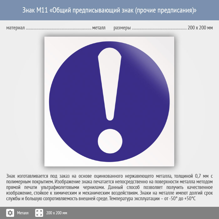 Знак M11 «Общий предписывающий знак (прочие предписания)» (металл, 200х200 мм) в Твери купить