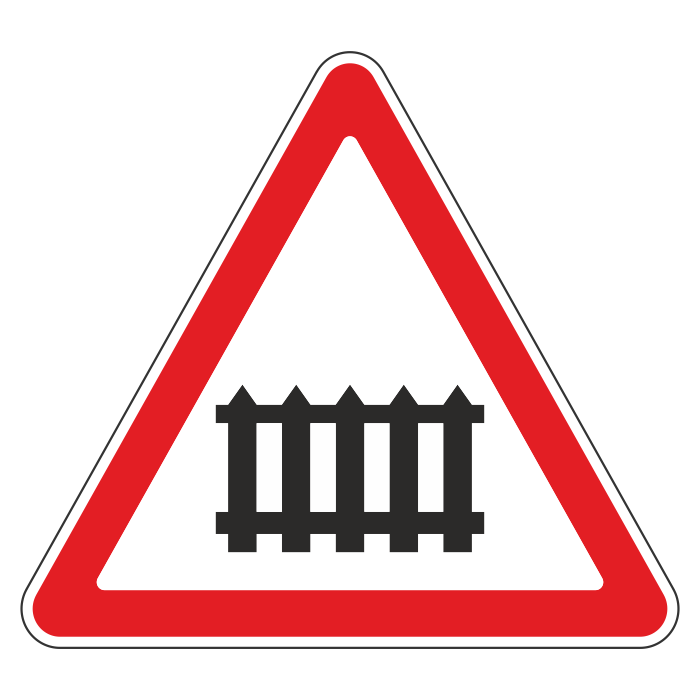 Дорожный знак 1.1 «Железнодорожный переезд со шлагбаумом» (металл 0,8 мм, II типоразмер: сторона 900 мм, С/О пленка: тип Б высокоинтенсивная) в Твери купить
