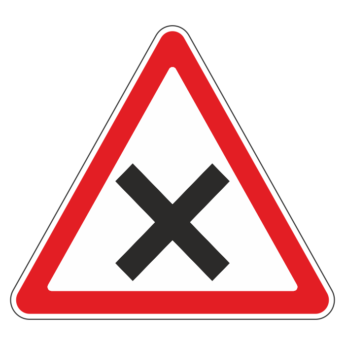Дорожный знак 1.6 «Пересечение равнозначных дорог» (металл 0,8 мм, II типоразмер: сторона 900 мм, С/О пленка: тип А инженерная) в Твери купить