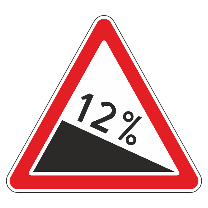 Дорожный знак 1.13 «Крутой спуск» (металл 0,8 мм, II типоразмер: сторона 900 мм, С/О пленка: тип Б высокоинтенсивная) в Твери купить
