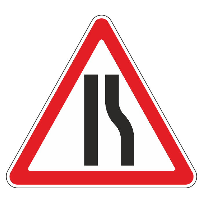 Дорожный знак 1.20.2 «Сужение дороги» (металл 0,8 мм, III типоразмер: сторона 1200 мм, С/О пленка: тип А коммерческая) в Твери купить