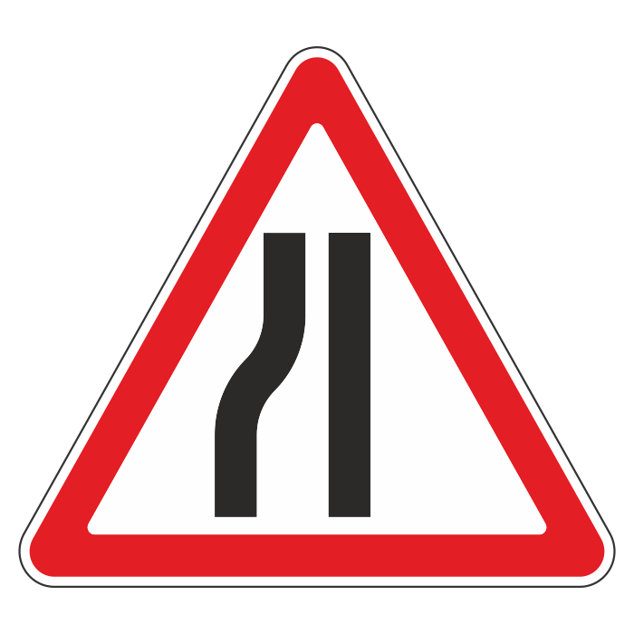 Дорожный знак 1.20.3 «Сужение дороги» (металл 0,8 мм, III типоразмер: сторона 1200 мм, С/О пленка: тип А инженерная) в Твери купить