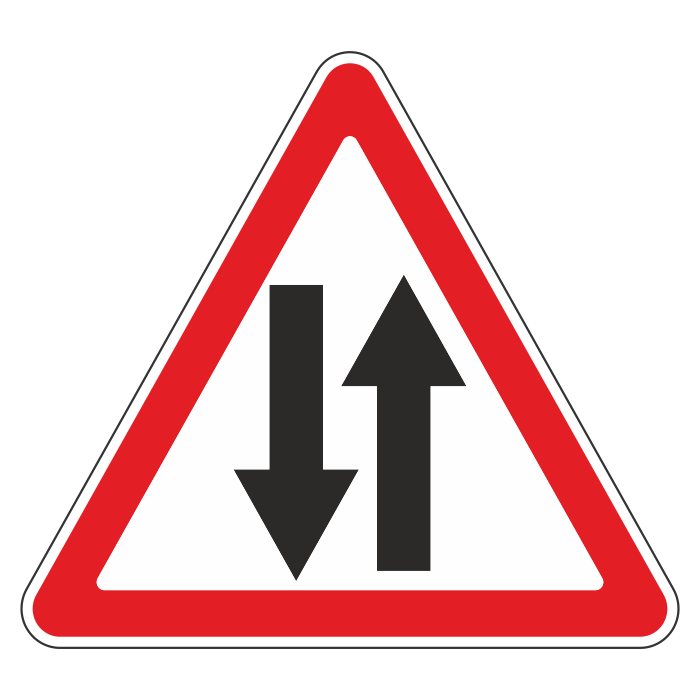 Дорожный знак 1.21 «Двустороннее движение» (металл 0,8 мм, III типоразмер: сторона 1200 мм, С/О пленка: тип А коммерческая) в Твери купить