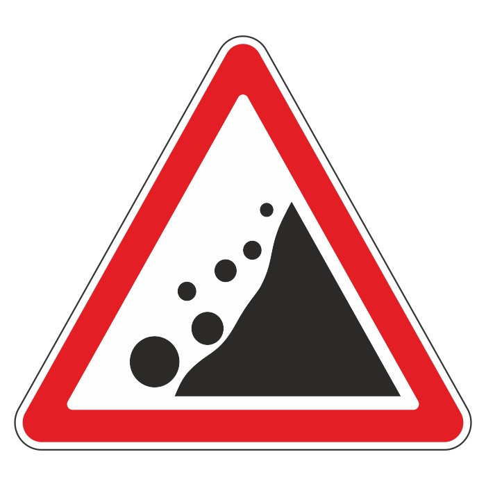 Дорожный знак 1.28 «Падение камней» (металл 0,8 мм, I типоразмер: сторона 700 мм, С/О пленка: тип А инженерная) в Твери купить