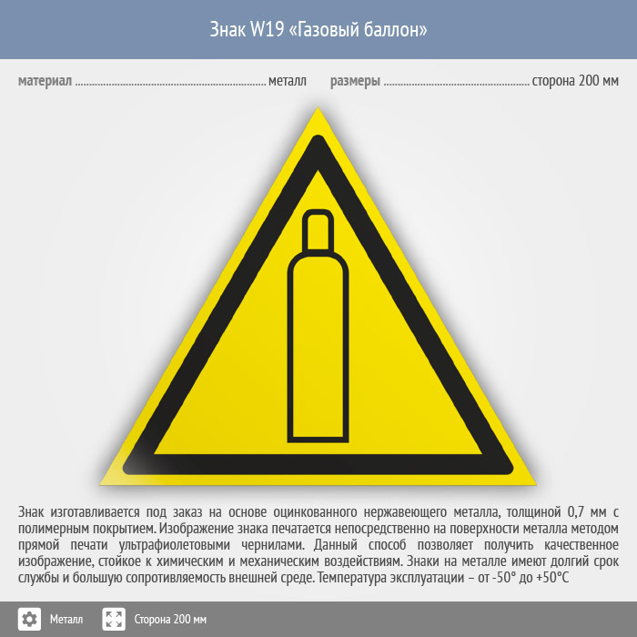 Знак W19 «Газовый баллон» (металл, сторона 200 мм) в Твери купить