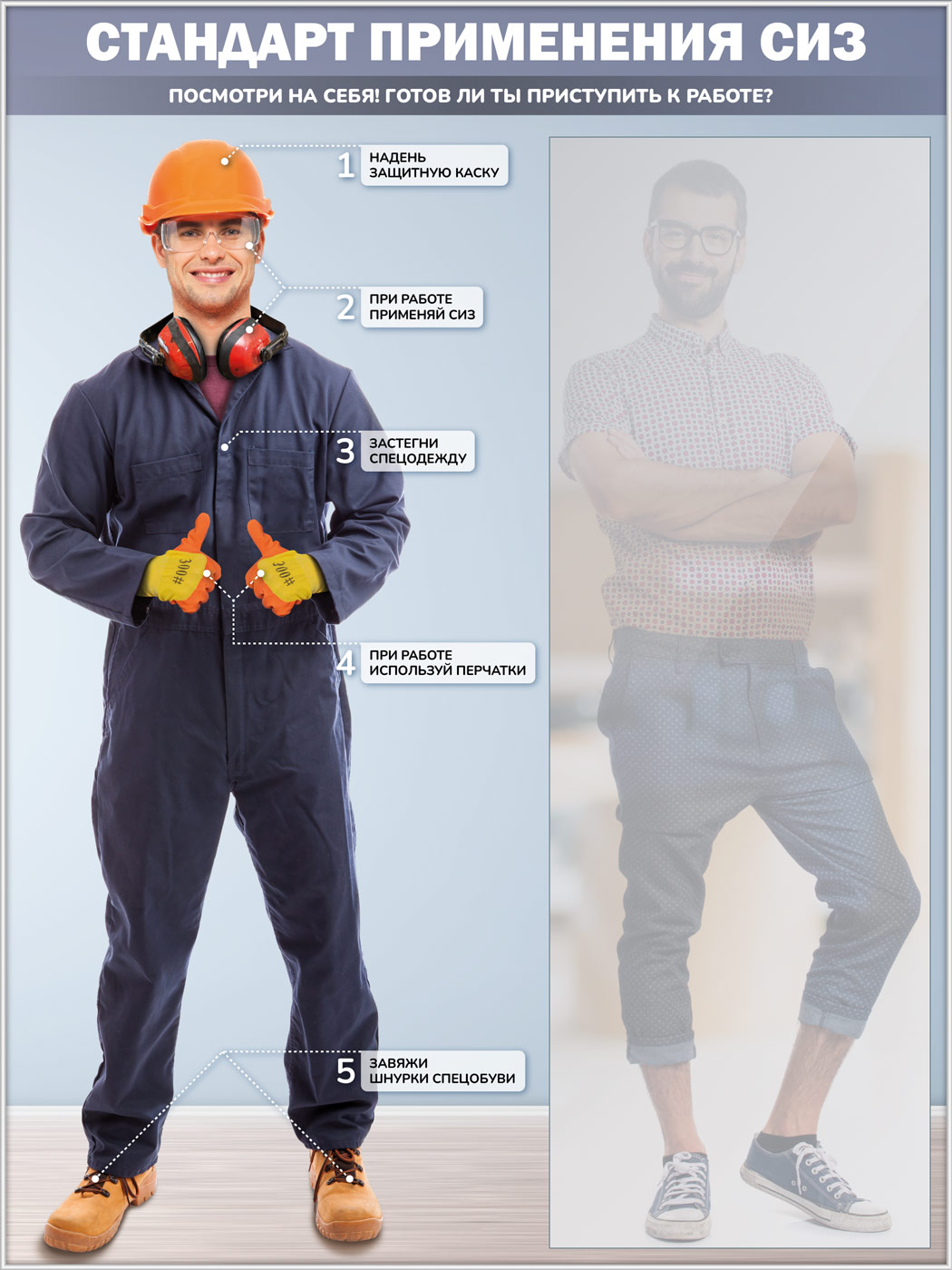 Стенд для демонстрации применения СИЗ с зеркалом, 1500х2000 мм в серебряном багете (СПС-01-С) в Твери купить