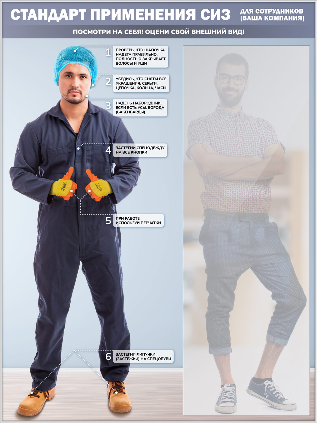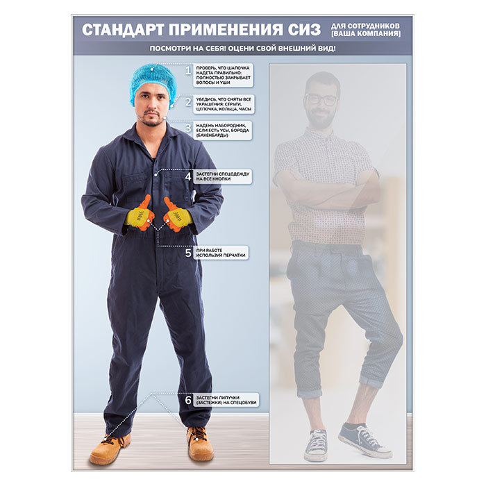 Стенд для демонстрации применения СИЗ с зеркалом, 1500х2000 мм в серебряном багете (СПС-02-С) в Твери купить