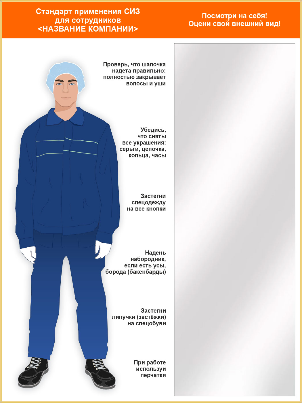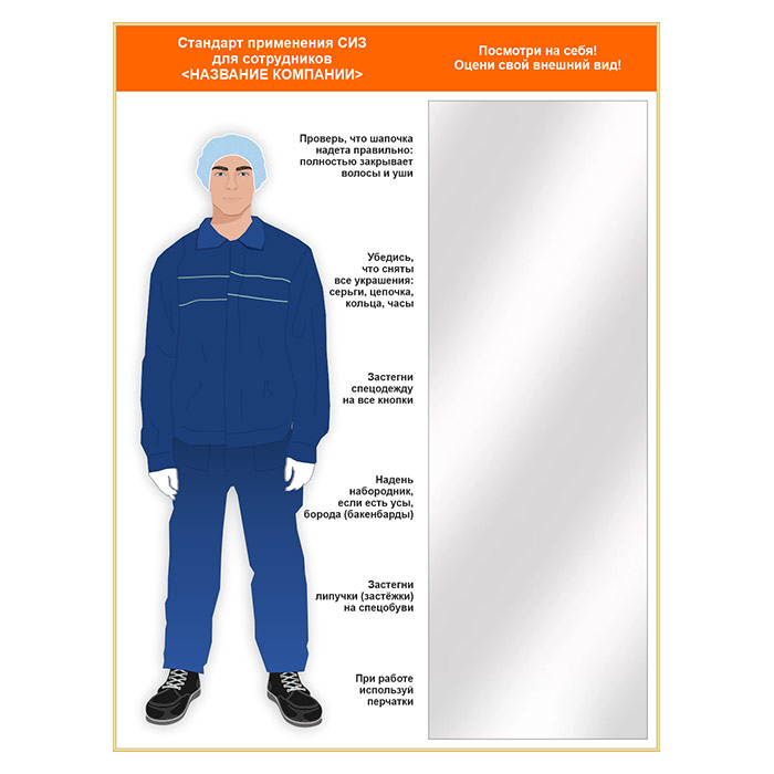 Стенд для демонстрации применения СИЗ с зеркалом, 1500х2000 мм в золотом багете (СПС-03.2-З) в Твери купить