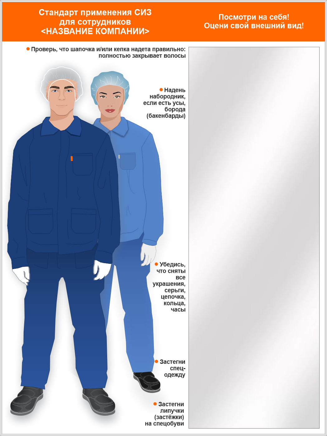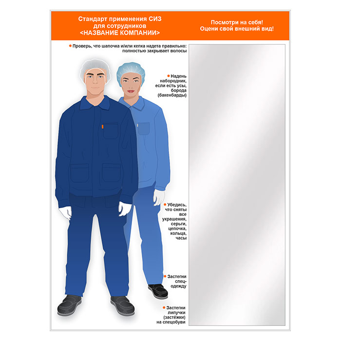 Стенд для демонстрации применения СИЗ с зеркалом, 1500х2000 мм в серебряном багете (СПС-04.2-С) в Твери купить